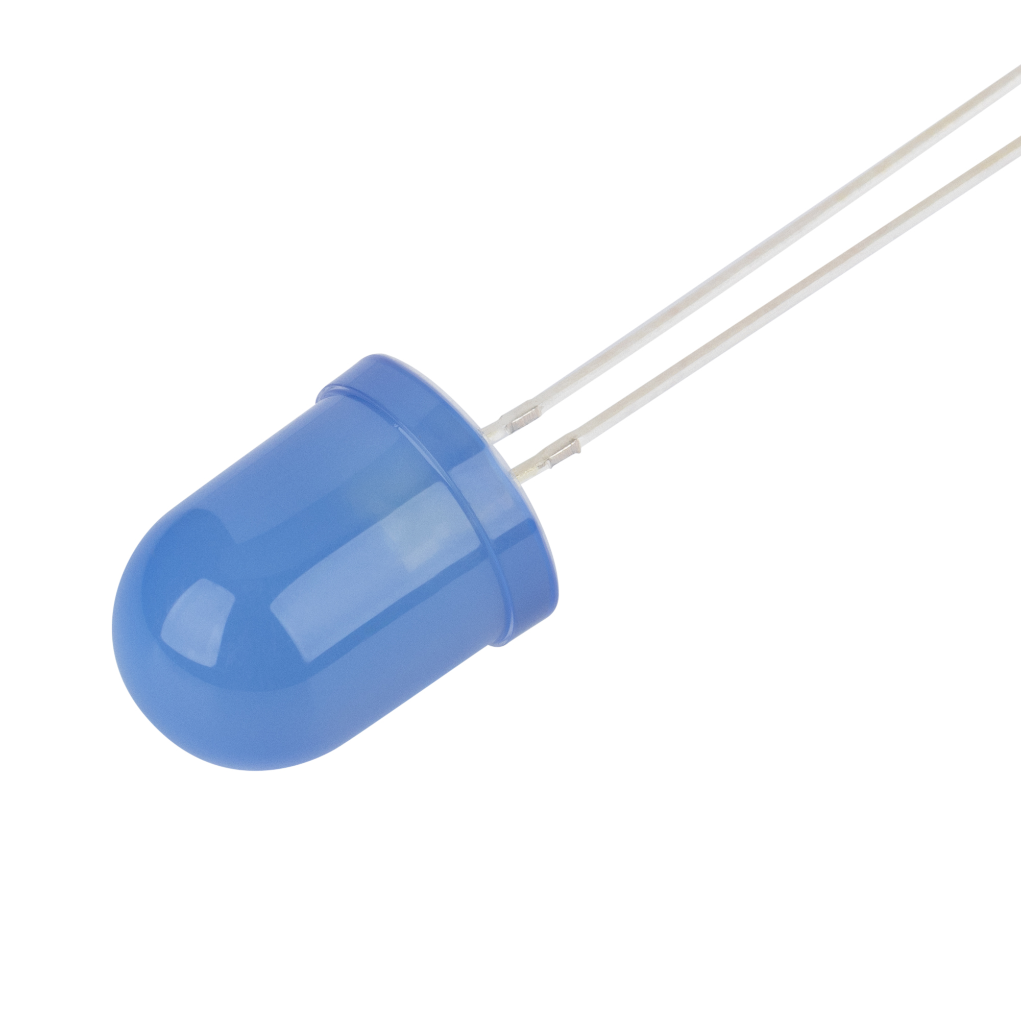 Поставка под заказ от 5000 шт. Выводной круглый светодиод, d=10 мм, диффузная синяя линза. Цвет свечения синий (470 нм). Угол излучения 60°. Сила света Iv=1500-2500 мкд, If=20 мА. VF=3-3.8 В. Рекомендуемый постоянный рабочий ток <16-17 мА.